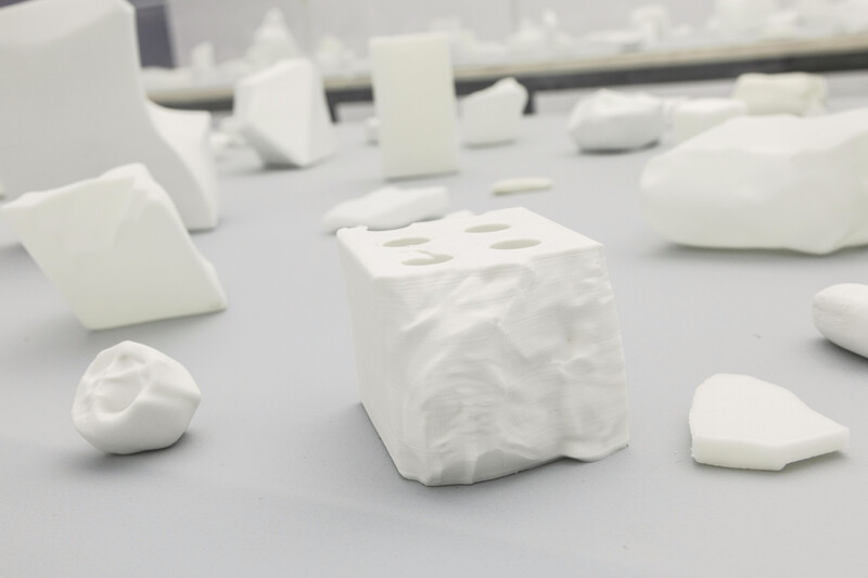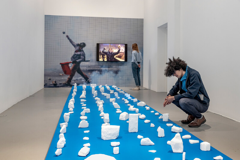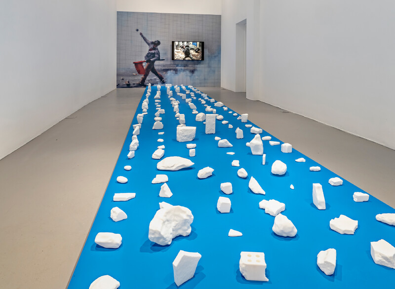 Reflecting on political resistance and upheaval through these moments of stone warfare, YangMing uses 3D scanning techniques to reconstruct models from photos and videos of protest objectiles found on the internet, and then renders them in vivid sculptural material to reproduce the form of found weapons with 3D printing technology. The display of this array of re-captured protest ephemera conjures an oblique sense of the built environment, shifting attention to the mundane debris of the city as a way of reconsidering the affordances of urban inhabitation and militant resistance