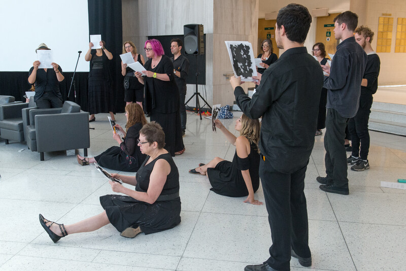 The Element Choir is an improvising choir based in Toronto, Canada, created by Christine Duncan and Jean Martin and directed by Christine Duncan. The Element Choir works with both structured and non-structured elements, based primarily on a system of conduction cues. As an ensemble they explore textural and timbral sound qualities, soundscapes, rhythmic patterns, sound poetry, musical genre interplay, and extended voice techniques. This cinematic approach to group vocalizing presents both tonal and non-tonal material in a constantly evolving and “in the moment” sonic environment.