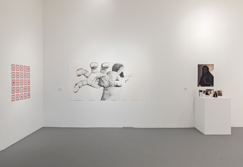 At the centre of the space, sculptures reveal personal reflections on the body. Morgan McCracken and Emma Tanner expose the persistence and strength of physical and emotional pain. While Seline Rajkumar’s work embodies themes of love, creating a safe space for artists and audiences alike. Acceptance of one’s true self restores power to our experiences, something Meihan (Erin) Yang channels through printmaking.