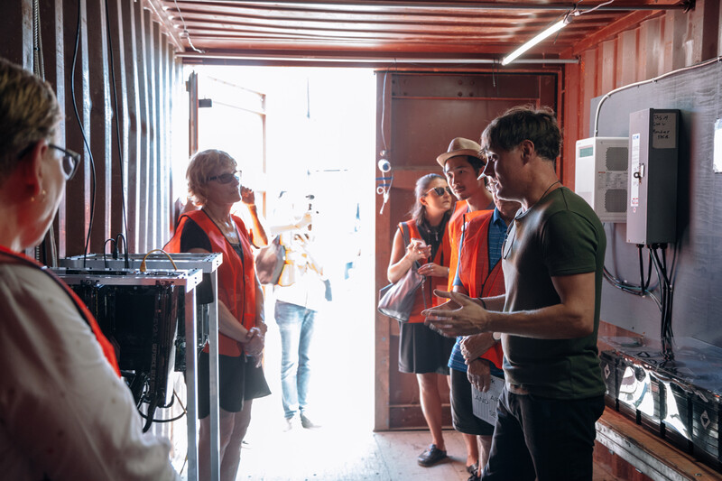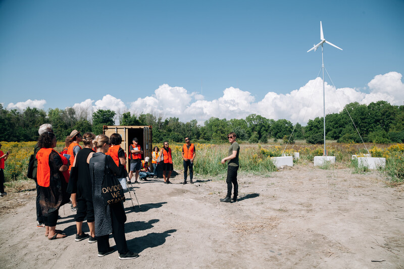 Starting at the shipping container housing the live video feed and data visualization of HARVEST’s mining rig, Julian Oliver, facilitated by Musket Transport, will lead the group through the shipping yard to the adjacent field where the rig is located. At the foot of the 2kW wind turbines, Oliver will discuss how he directs the turbines’ clean power into mining cryptocurrency to support climate change research and awareness. Acting as a fully functional prototype beyond a media-art context, Oliver envisages hundreds of such HARVEST nodes could be deployed in the windiest parts of the world, together generating large sums of supplementary funding for climate-change NGOs in a time where climate science itself is under siege from the fossil-fuelled interests of governments and corporations. Oliver will address how the financials generated by HARVEST introduce the prospect of economies of scale and reveal the volatility of markets.