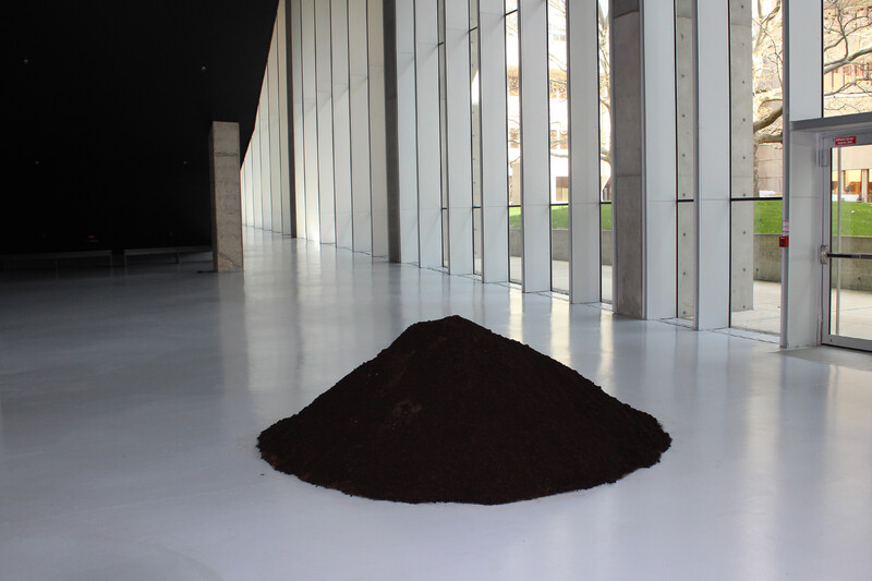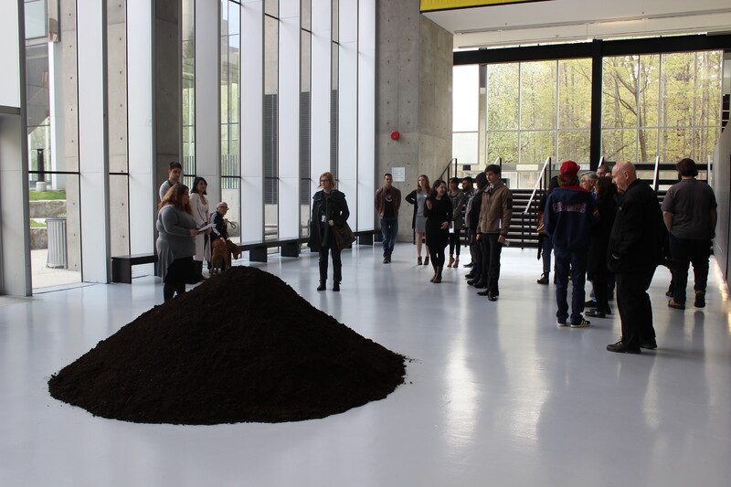 A third component of the project is an installation by curators7. A pile of soil will appear in the atrium of the Communication, Culture and Technology (CCT) building and will be on display to the public three days prior to the opening reception. Launching the project, the dirt pile is an intervention of raw land that draws attention to the surrounding infrastructure by contrasting dirt with architecture.