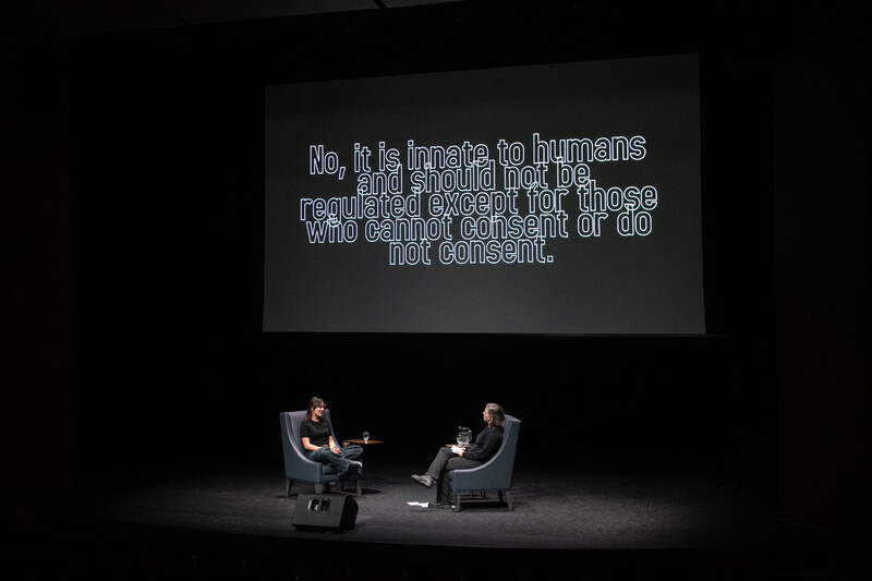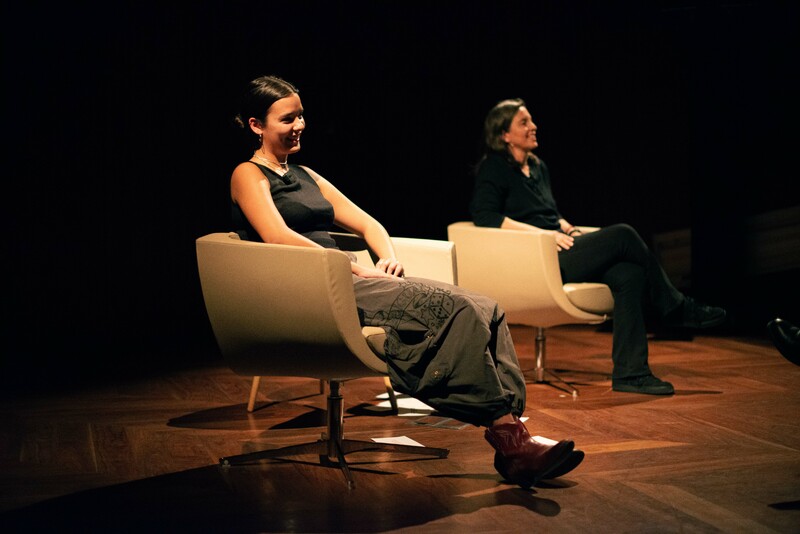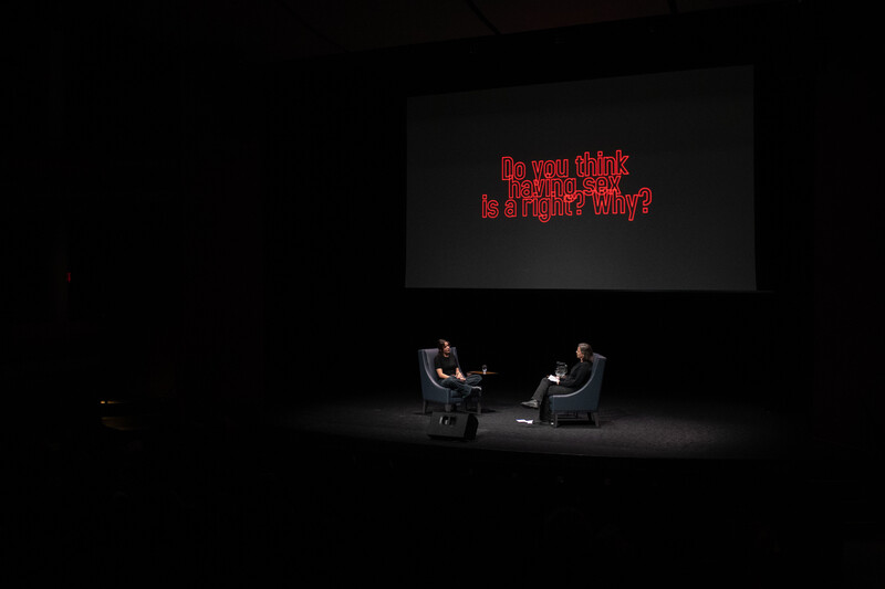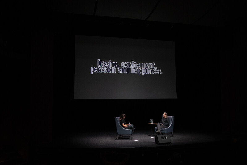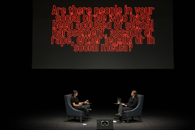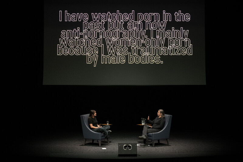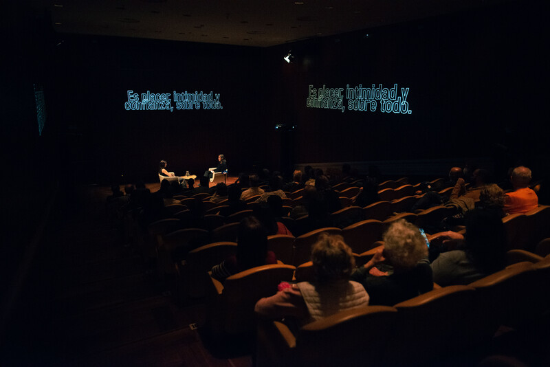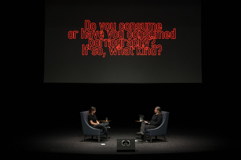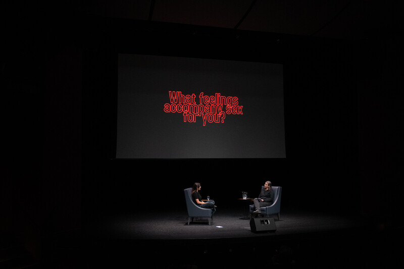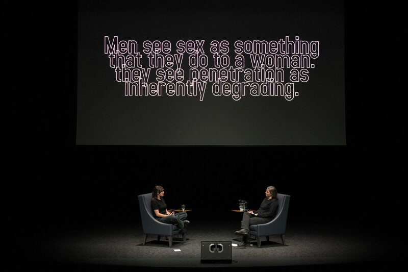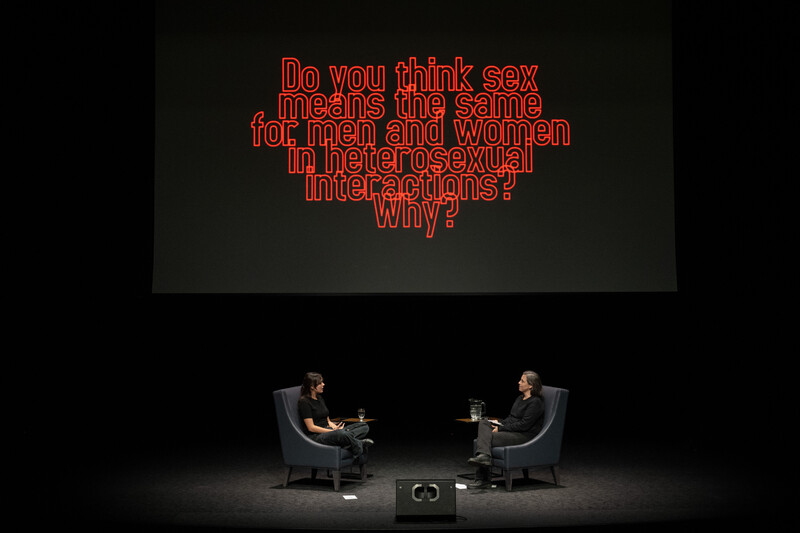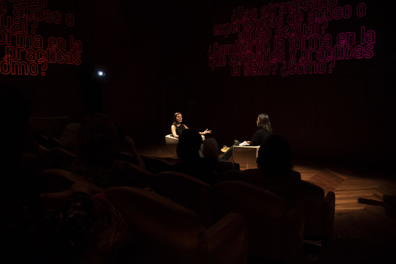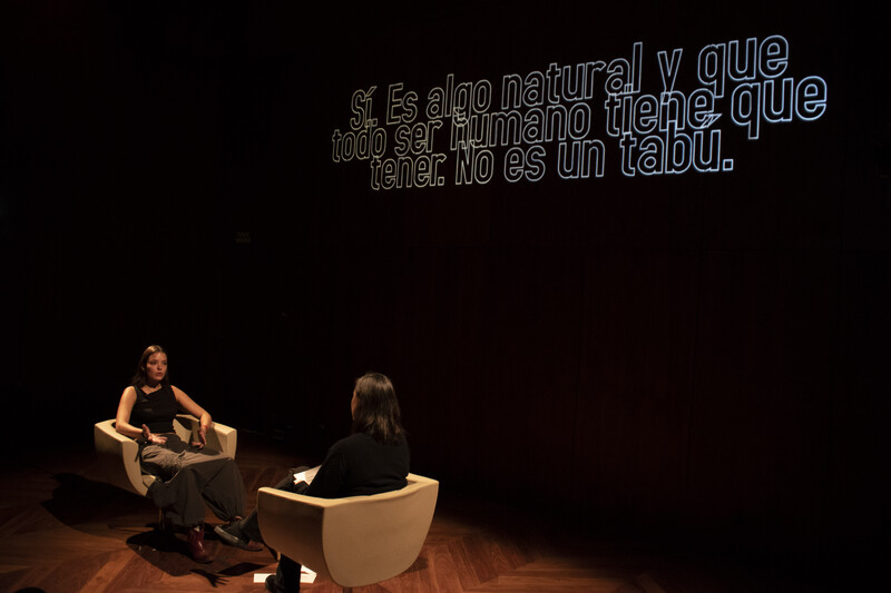 hook up-hooked up-hooking up is a performance conceived by Lorena Wolffer to make young people’s perceptions and experiences regarding sex visible through a public conversation with Kira, her teenage daughter. This unrehearsed conversation revolves around Kira's perceptions and positions, framed with the voices, stances, and experiences of other young people on the subject, both in the dialogue itself and in the form of video projections. The project aims to question gender today through the sexual practices of generations of teenagers and young adults who have grown up with a sexual education derived from normative pornography but, at the same time and thanks to feminisms, experience their bodies, genders and sexualities in more free and egalitarian forms than the generations that preceded them.
