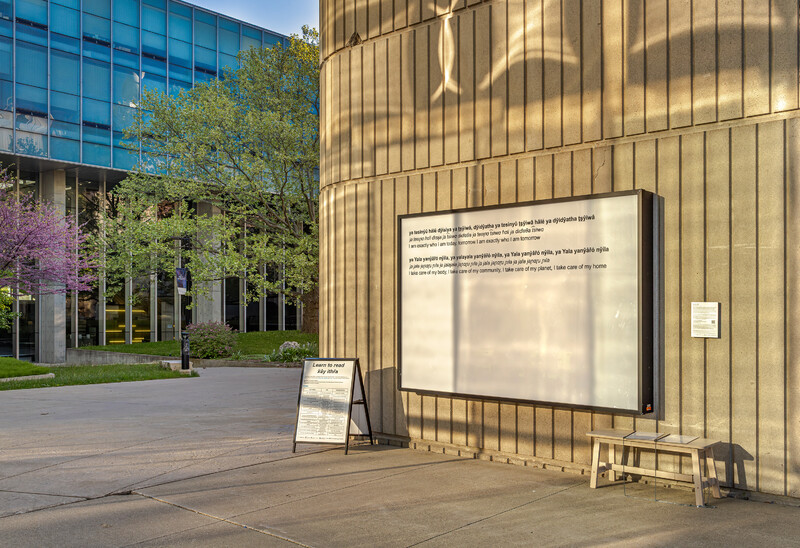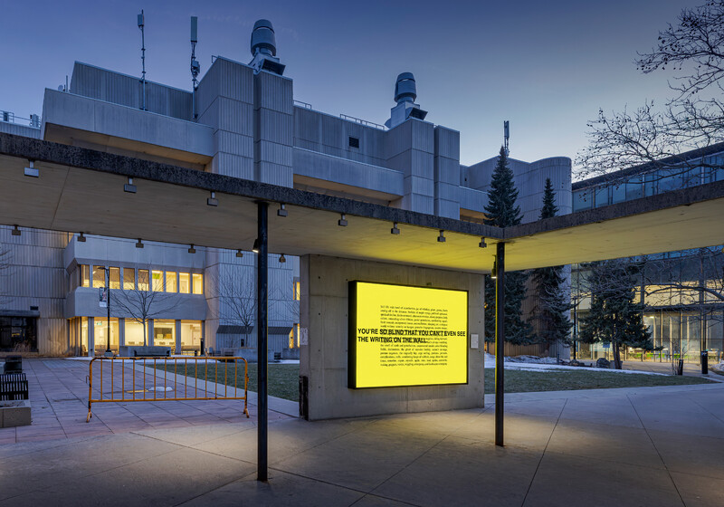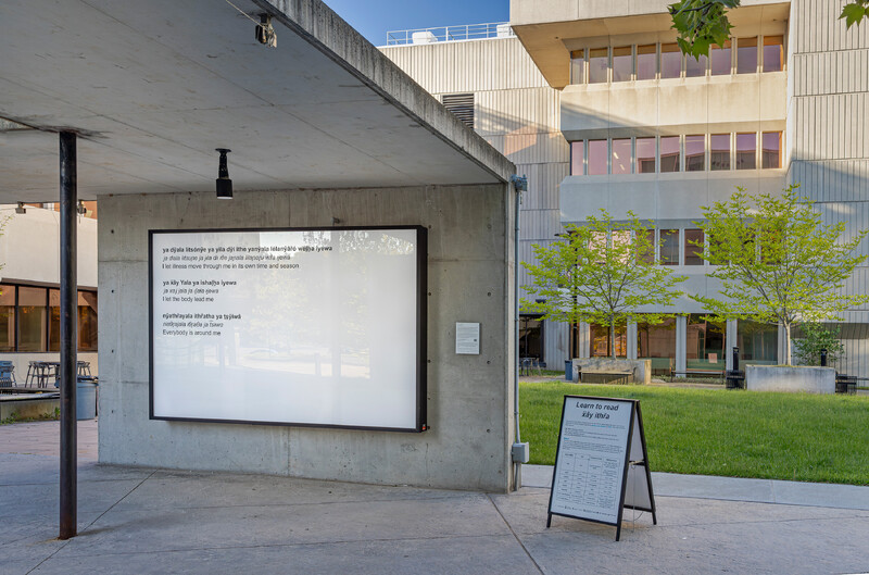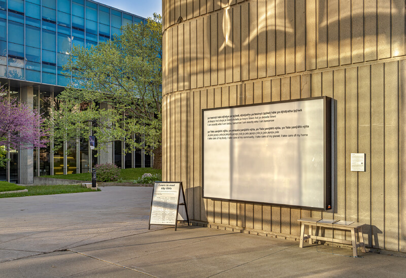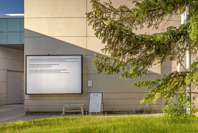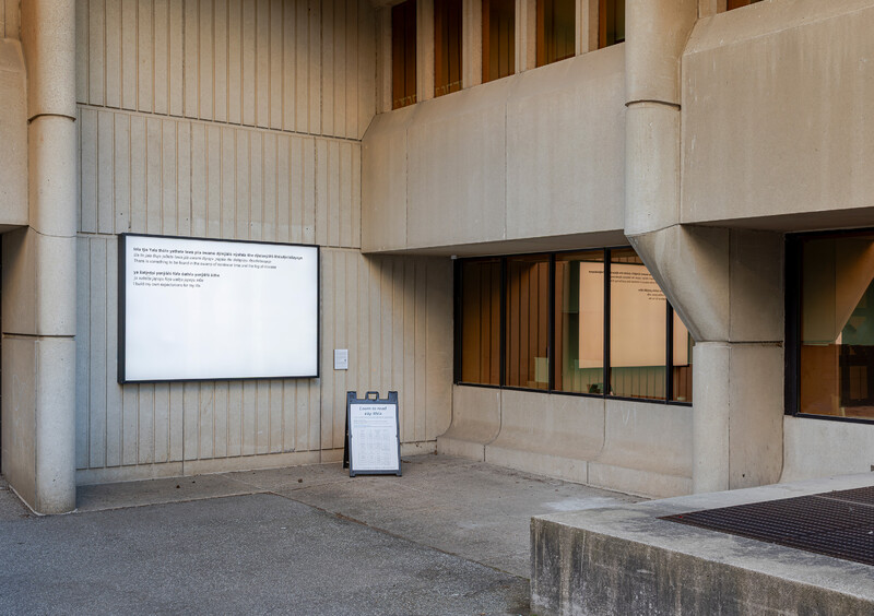 In a Manner of Speaking (IMS) explores the longing to be understood, interrogating the limitations of language and the inadequacies of culturally dominant vocabularies. Across three chapters–reading, speaking, and listening emerge as acts of invention and reinvention, shaped by diverse lived experiences. Artists reimagine communication, challenge colonial and ableist linguistic norms, and illuminate the intersections of identity, access, and expression. Structured like a book–a medium for sharing information and ideas–this three-part exhibition animates four outdoor lightboxes and moves from Encounter and Negotiation to Longing and Desire, and finally to Understanding and Fulfillment.