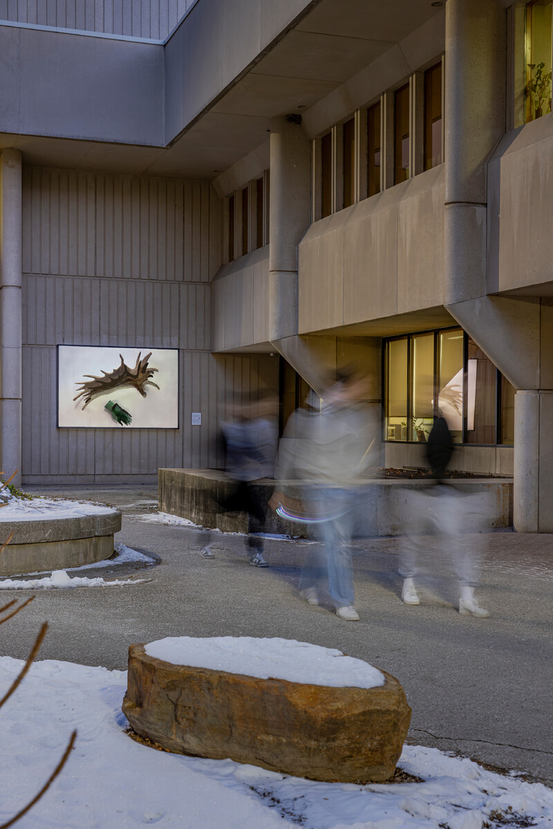 In a Manner of Speaking is free and open in public spaces across the UTM campus. Some movement throughout the campus is required—ramps and curb cuts are in place.