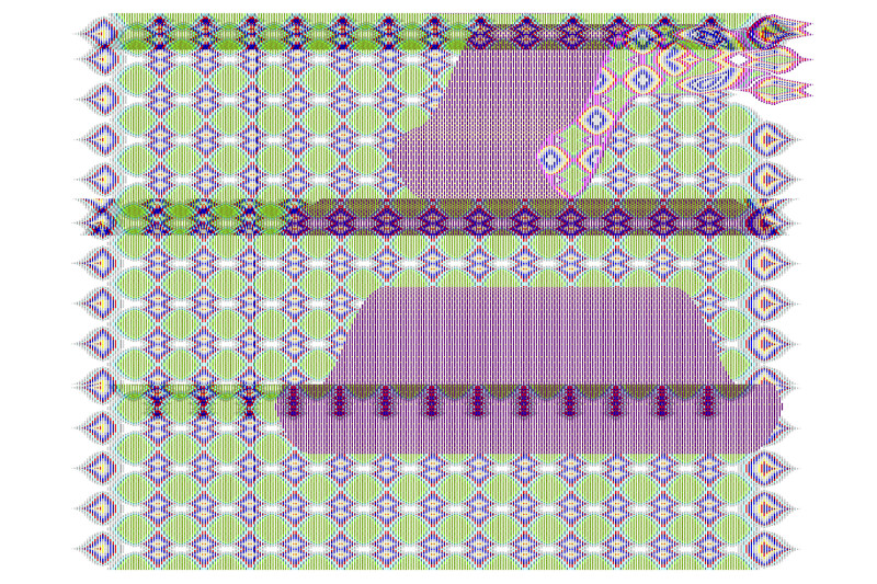 Shaheer Zazai’s artistic practice employs a process-based methodology: he works from a set of parameters (including rules for colour-relation and colour-interaction, font size, and characters) as he generates abstract and geometric imagery using Microsoft Word.