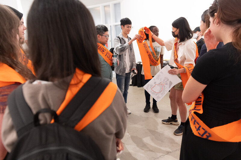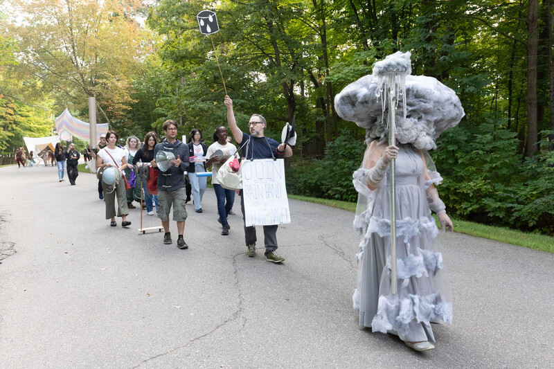 What are the unspoken rules for gathering, and who decides them? How can we support divergent needs and redirect our assemblies towards different goals? What would a more accessible world feel, smell, and sound like? In a world prioritizing the able-bodied and fast-paced, what tools and practices support diverse tactile, olfactory, and auditory experiences? These questions are central to QUIET PARADE, a near-silent procession fostering mutual support and acknowledging barriers faced by underrepresented communities. Contributing artists challenge social norms, reappraising neurodivergence and disability to balance diverse needs and reshape conceptions of accessibility in socially conscious, embodied, and collaborative ways.