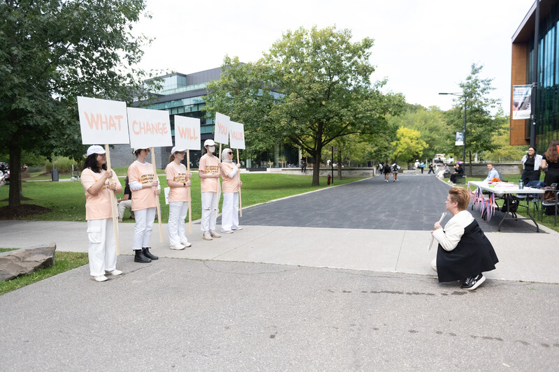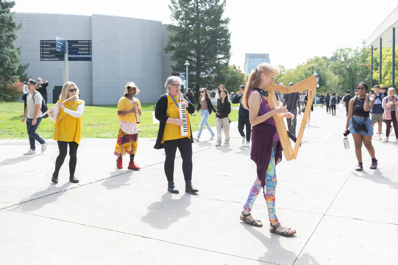 The parade venue is fully accessible for individuals requiring barrier-free access. It is located outdoors on the UTM campus, with ramps and curb cuts in place to facilitate movement. Wayfinding signage and volunteers will be available to assist participants and audience members in navigating the site. Accessible, multi-user, gendered washrooms are located at ground level in buildings along the parade route.