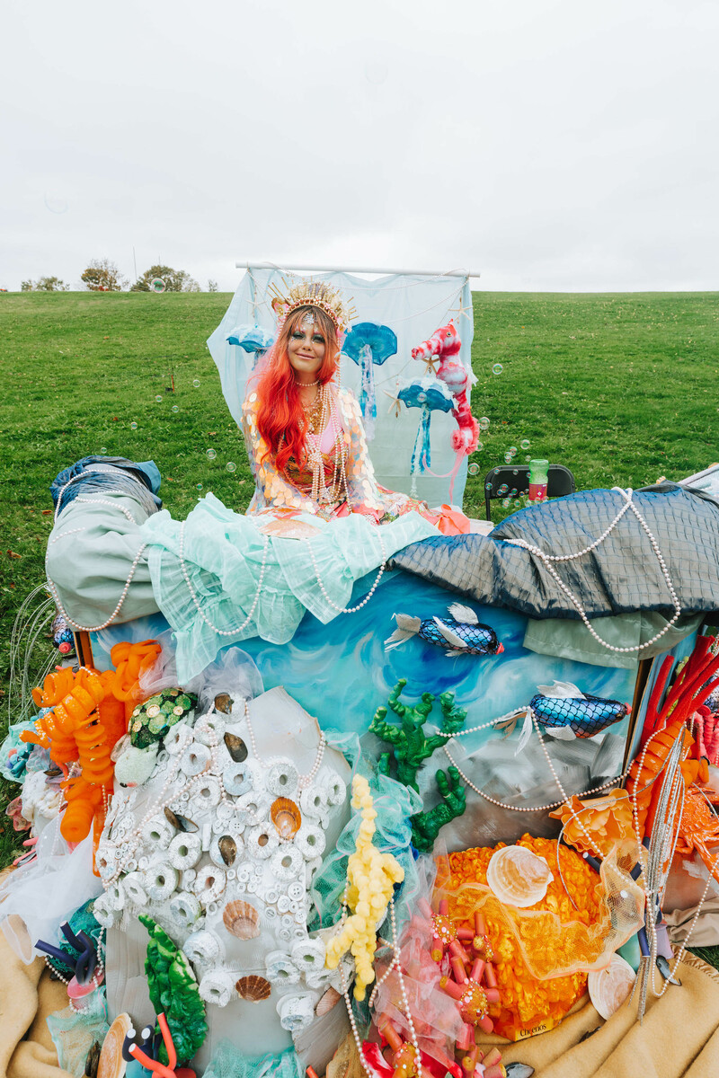 Some floats have interactive elements or offerings, such as charms and handmade stim toys. It’s okay if you do not wish to interact or receive an item. Some ways you can communicate this are by taking a step backwards when someone approaches, shaking your head ‘no,’ or holding up your hand in a ‘stop’ motion. Parade artists respect and affirm that there are many ways to participate.