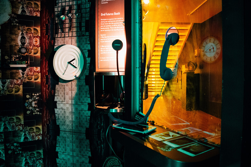 Formed in 2014, **Black Quantum Futurism** is an interdisciplinary creative practice between Camae Ayewa and Rasheedah Phillips, based in Philadelphia. BQF weave quantum physics, Afrofuturism, and Afrodiasporic concepts of time, ritual, text, and sound to present innovative works and tools offering practical ways to escape negative temporal loops, oppression vortexes, and the digital matrix. In 2016, BQF founded Community Futures Lab, a community arts space in North Philadelphia. BQF is a 2018 Velocity Fund Grantee, 2018 Akademie Schloss Solitude & ZKM Web Resident, 2017 Center for Emerging Visual Artists Fellow, 2017 Pew Fellow, 2016 A Blade of Grass Fellow, and a 2015 artist-in-residence at Neighborhood Time Exchange, West Philadelphia. BQF has presented, exhibited and performed at Red Bull Arts, New York; Serpentine Galleries, London; Philadelphia Art Museum; Open Engagement; MOMA PS1, New York; Bergen Kunsthall; Le Gaite Lyrique, Paris; and Squeaky Wheel, Buffalo, among others.