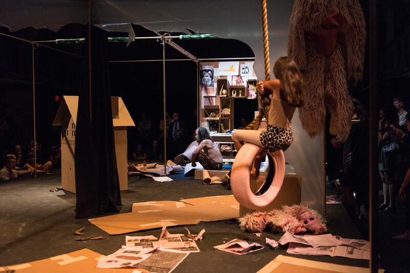 During the development of her project Mast researched both animal captivity and human confinement. She conducted interviews with animal experts, including a zoo curator, an anthrozoologist (who studies the interaction between humans and animals) and a telepathic interspecies communicator. At the same time, she examined emotional expression in animals, the affective bonds between humans and animals, and the intersections of speciesism, racism, and sexism. To highlight her findings, she cast a core group of performers to physically interpret and embody her integrative points of interest. Her cast is comprised of a method actor who specializes in emulating ape movement, a Butoh dancer who explores animal and human social psychology, a ballerina turned cirque performer, an artist who works with the animal/human gaze, and a child actor and horse fanatic. In her collaborative work with them, Mast has generated scores that serve as “frames” in which to explore and examine both the political implications of marginalization and the behaviour of humans through a cultural understanding of animal nature.