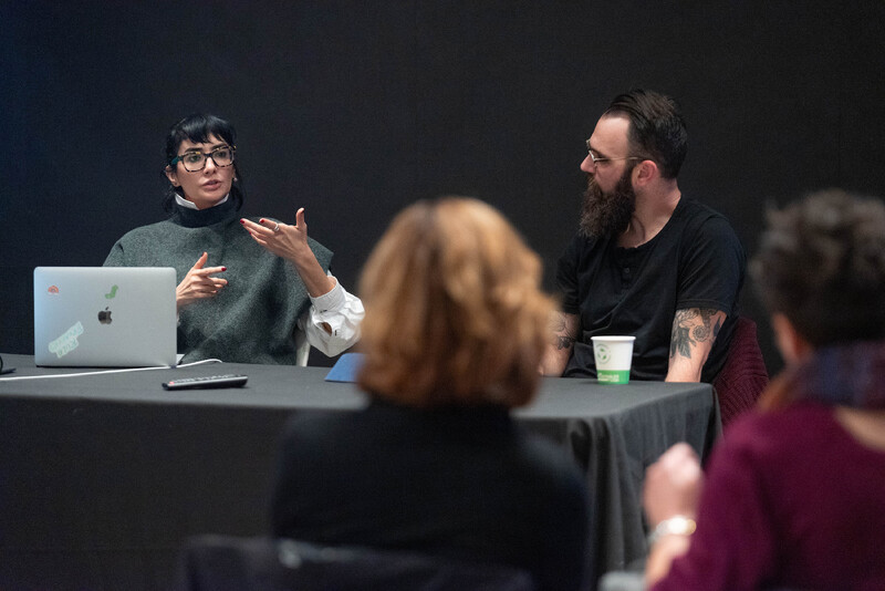 This conversation with Deaf Canadian Persian artist Maryam Hafizirad and hearing Canadian-American music researcher Ely Lyonblum asks: What are the relationships and tensions between auditory and deaf cultures? First brought together by Signed Music, they reflect on collaborating across historically divided cultural and artistic practice and share examples of Deaf musical performances that have been a galvanizing force for their collaboration. Drawing on a combination of professional and lived experience—Hafizirad as a culturally Deaf “insider” and Lyonblum as a non-signing “outsider”— they discuss their work and their projects together (The Black Drum; The Artists Broadsheet) in complementary roles as artist, curator, and researcher.