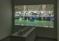 The work seeks to explore the nature of mass-manufacturing products on various scales, from the geopolitical context of hyper-fragmented labour to the bio-political condition of the human body on the assembly line. Engineering logic has reduced the factory labourer to a human-machine through scientific management of every single movement. By shifting the purpose of the labourer’s actions from the efficient production of objects to the performance of choreographed acts, mechanical movement is reinterpreted into dance. What is the value of this artifact that only exists to support the performance of its own creation? And as the product dictates the movement, does it become the subject, rendering the worker the object?