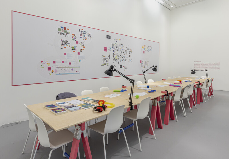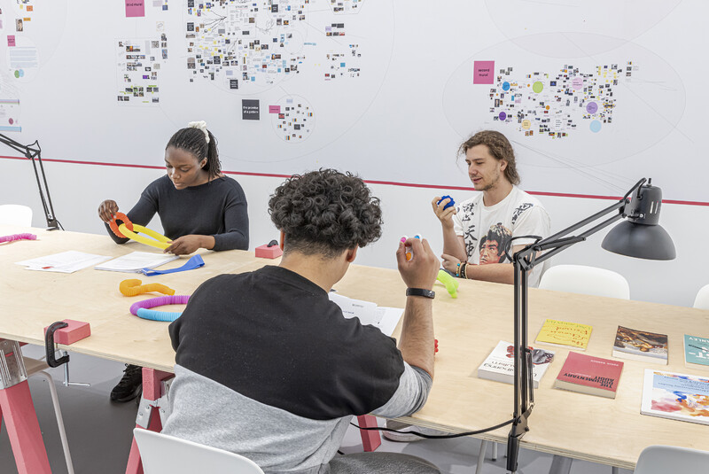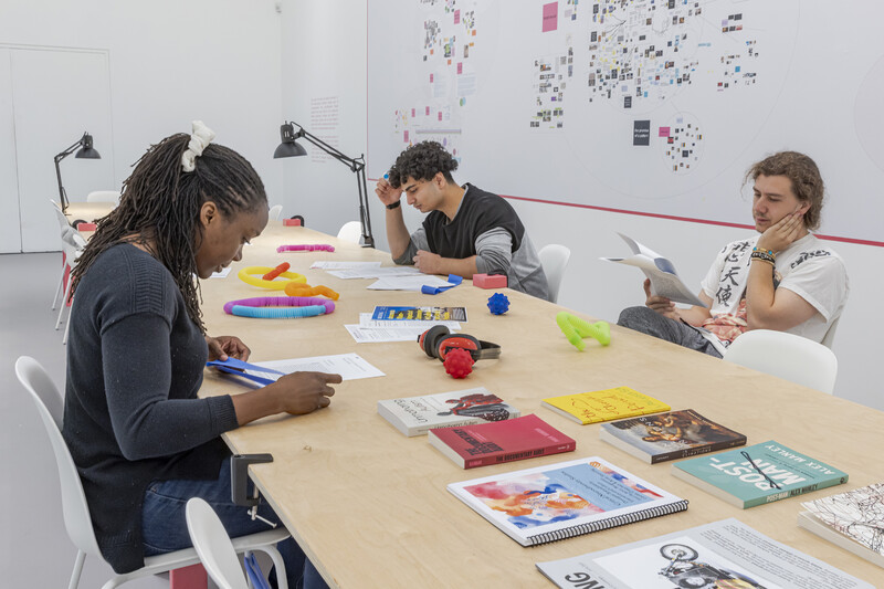 To further support this ethos of collaboration, the gallery space has been transformed into a sensory-friendly studio environment that encourages group research and learning. Outfitted with tables, chairs, stim toys, and a variety of materials tied to the exhibition’s themes, this co-creation studio offers a welcoming and inclusive setting designed to engage visitors and nurture creativity, dialogue, and collective exploration.