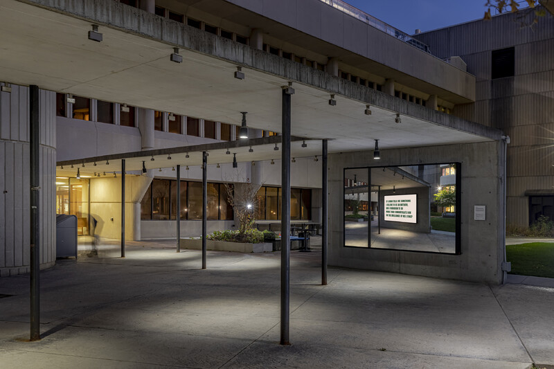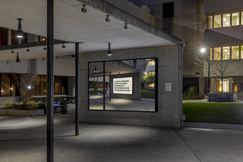 Demagogues is a provocation to question the authenticity of what is visible in the public realm. Each iteration of the work, whether a billboard or a framed print, is a photograph of the very site it’s displayed in and features the following sentence in the local language: If a man tells me something I believe to be an untruth, am I forbidden to do more than congratulate him on the brilliance of his lying? At face value, the image seems to document the presence of this text at the site at some point in time; but in fact what’s displayed is fake, as the text has been inserted into the photograph via digital manipulation.