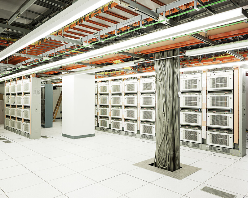 High-frequency trading firms move to be as close as possible to Internet infrastructure: the closer these firms are, the faster their algorithms can trade. It is no coincidence, then, that sites such as the Verizon Communications headquarters, which is explored in Fragments on Machines, are located in the heart of New York’s financial district. Elusive yet pervasive, data centres consist of room upon room of copper and fibre-optic cables, computer servers, and ventilation systems. With direct links to the companies they serve, these Internet hubs become a kind of unofficial space for trade.