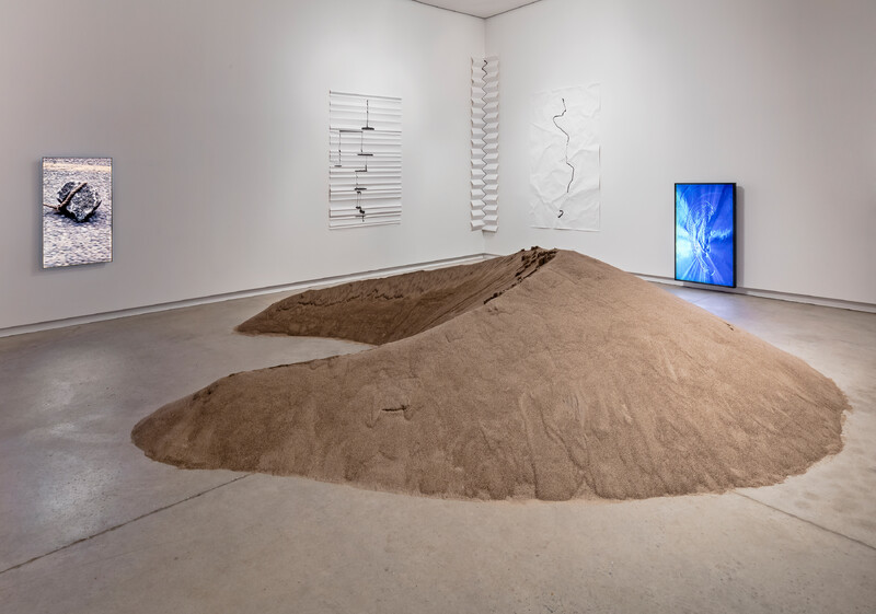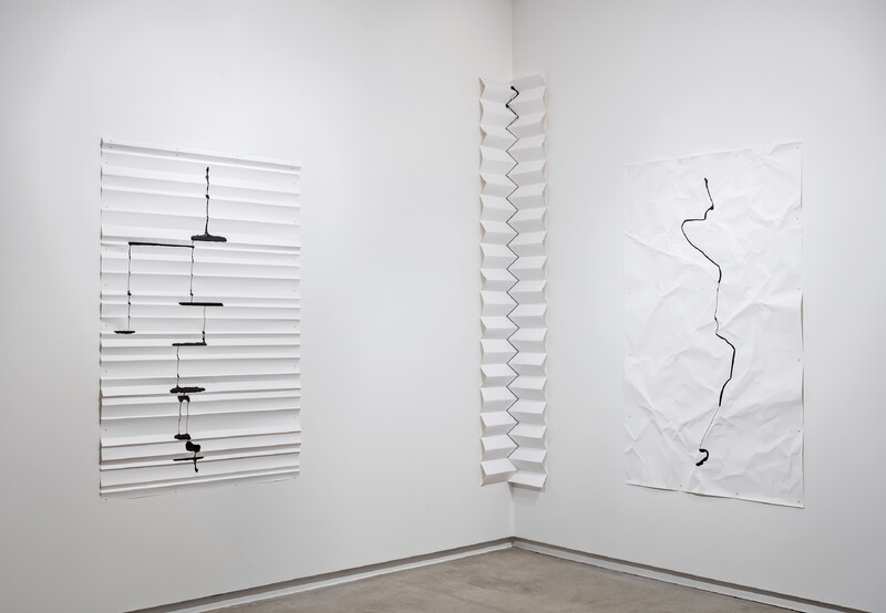 In a new drawing series commissioned by the Blackwood Gallery entitled Ink on Paper Landscape, Knowles makes visible the geomorphological forces that perpetually mark the surface of the earth. Here, folded crushed paper acts as a landscape for the sudden flow of ink. The creative act is seemingly simple: load one pipette with ink, squeeze, and release. But the process the ink visualizes is complex. It is pulled by gravity, picks up speed, slows down, undulates, and, at times, cleaves. Like a signature, each system reveals the characteristics of an otherwise unnoticed physical experience.