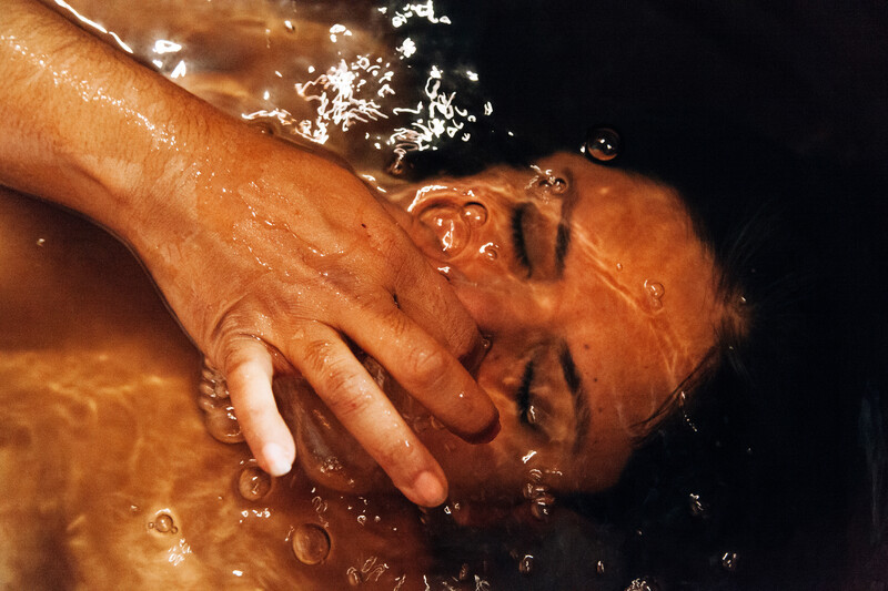 As part of Radiodress’s ongoing research around the queer body as a material site of resonance and empathy, MKV: Credit River Immersion acknowledges the physical toll that social justice work, migration, and climate change takes on marginalized bodies. Basing MKV upon the Jewish ritual bath ceremony of mikvah, the artist queers the traditional process, leaning towards an embodied and multi-dimensional spirituality. Traditionally, the mikvah bather is naked and immersed in water that comes from a natural source. The Shomeret, or guide, sits beside them and offers prayers suited to the purpose of their immersion. MKV: Credit River Immersion incorporates a localized awareness of the colonial footprint on our local water sources, and, in line with the mikvah tradition, some of the water is gathered from melted snow or rain around the gallery site.