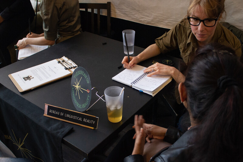 The Bureau of Linguistical Reality is a public participatory artwork by artists Heidi Quante and Alicia Escott. Established in 2014 out of frustration with the dearth of language that reflected emerging climate realities and shared eco-political anxieties, the project takes up the Linguistic Relativity Hypothesis (also known as the Sapir-Whorf Hypothesis), which holds that the structure of a language affects its speakers’ worldviews. Thus acknowledging the social and cognitive power of words, The Bureau of Linguistical Reality creates new language as a way to better understand global shifts due to human-made climate change and other anthropogenic events. From 1–9 June 2019, the artists conducted workshops and hosted conversations with individuals and groups throughout Mississauga, inviting participants to coin neologisms expressing their feelings and experiences in the face of a rapidly changing world. Sometimes thwarting existing grammatical and linguistic conventions, the neologisms developed by participants with the Bureau of Linguistical Reality also contend with language’s hierarchies and inflexibilities: they imagine a world of words shaped differently, and by extension ask for a future shaped otherwise.