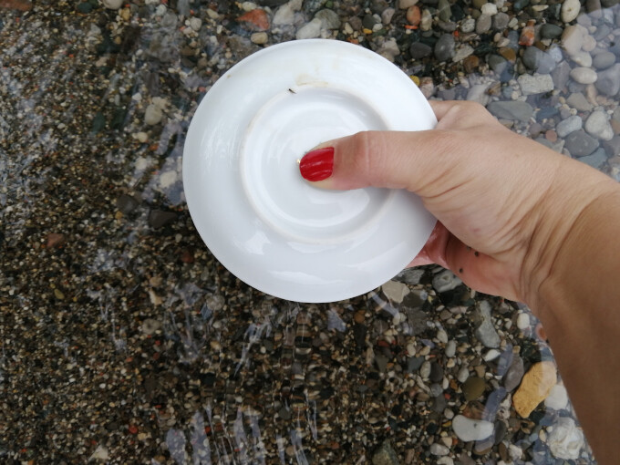 For the Waters imagines sharing a cup of coffee with the shoreline of Niigani-gichigami (Lake Ontario). Extending a gesture of care to the waters in the form of a Turkish coffee reading for the future. Drawing on symbolic meanings passed down to me through familial lines, the cup speaks to past, present, and future. Reading for, and from, the shoreline, is to read from the place where sky and water and earth meet. Shifts in the shoreline are indicators of larger forces. Reading from this place of relationship between elements, I necessarily consider my own situated relationship to them. To read coffee grounds is to acknowledge the beingness/aliveness/personhood of these elementals, our interlinked relationships with, and responsibilities to them. It is also a gesture of hospitality I only extend to those I wish to build intimacy with, so it is a gesture of love and care—an invitation to closeness.